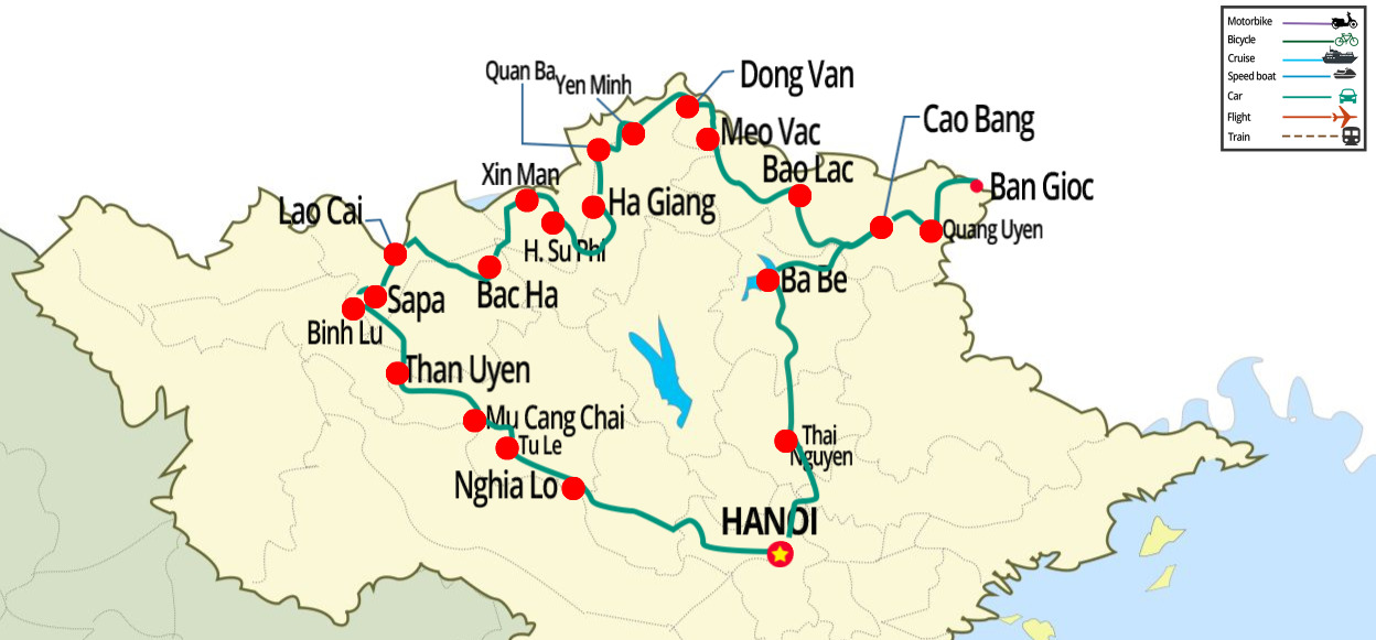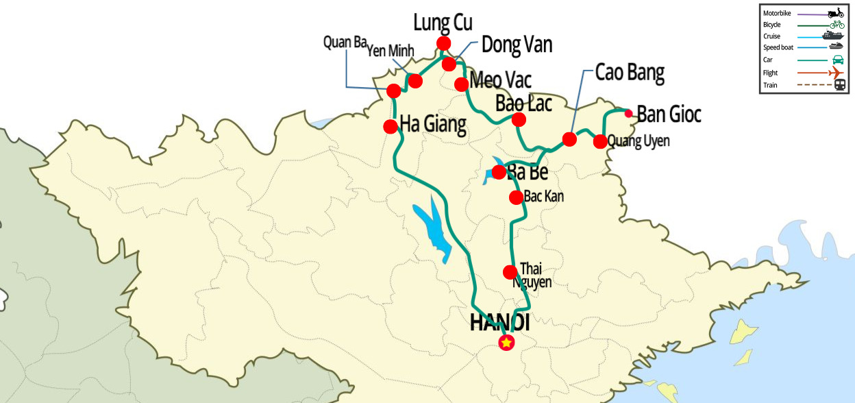 The Route: Hanoi - Ha Giang - Dong Van - Bao Lac - Cao Bang - Ba Be - Hanoi