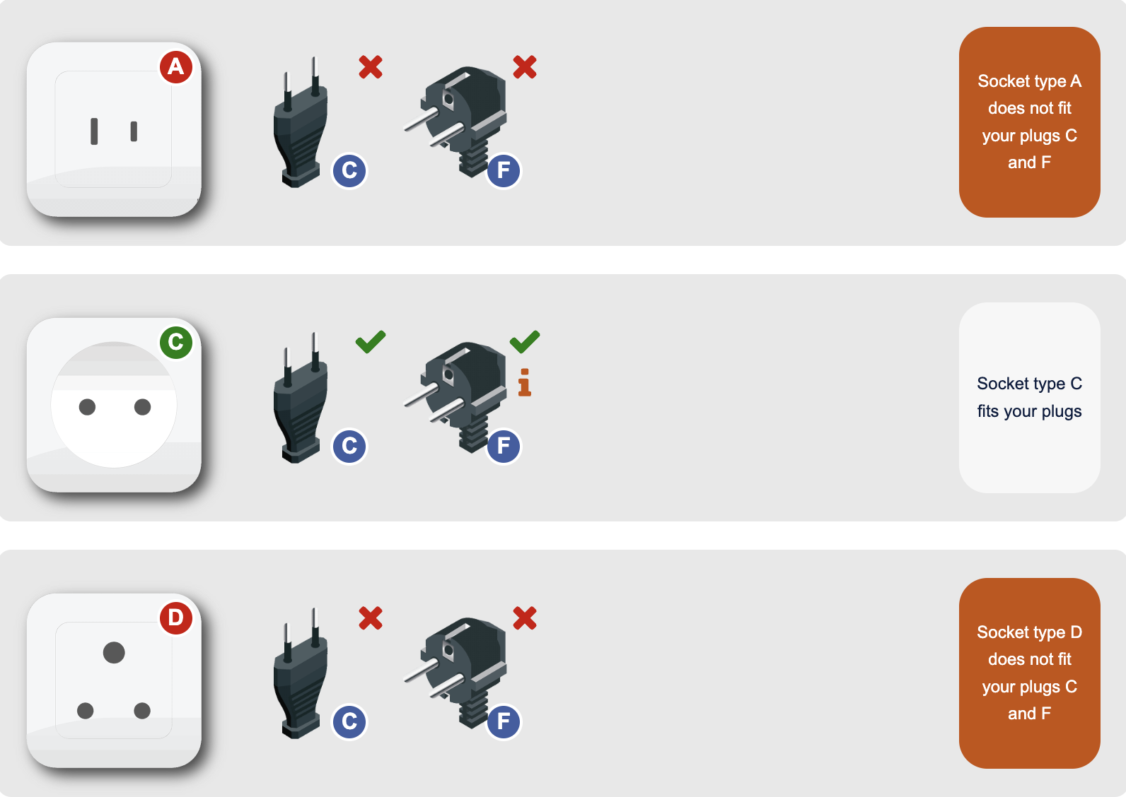 Type C and Type F plugs may fit many Vietnamese power outlets, but compatibility is not guaranteed everywhere.